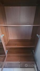 # Informazioni sulle misure : - Altezza : 226.2 cm - Larghezza : 60 / 41.6 cm ; - Lunghezza : 227 cm - Il blocco di base, in appoggio al pavimento, è profondo 60 cm Il resto delle parti del mobile, hanno profondità di 42 cm circa. # Informazioni generali sul mobile : - Il blocco della "Vetrina" , è diviso in 2 scoparti, i quali sono smontabili e riposizionabili - Vi sono "buchi" di riattacco appositi ; - Il "ripostiglio" alla destra, in basso - non presenta divisioni. E' un blocco con spazio unico ; - L'anta / colonna alla sinistra, al suo interno presenta 5 scomparti ❗ E' possibile smontare l'intero mobile, anche la base - Tutte le parti sono ad incastro, tramite le apposite viti e agganci i quali verranno ovviamente dati in momento di ritiro. // 🚚 " Per la spedizione " ; - Necessario concordamento tra venditore e acquirente. - Il ritiro del mobile, è a carico dell'acquirente ; - da parte mia, potrei smontare tutti i pezzi smontabili, e tenerli pronti. Ed inoltre, chiunque sarà interessato, E PUO' effettuare il ritiro, al mio paese di abitazione . . . Posso mettermi a disposizione, al pagamento della benzina consumata.