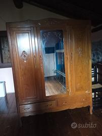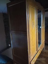 Vendo mobile antico completamente in legno massello .misure 195 cm altezza, 60 cm profondità,150 larghezza.Dorato di 3 ante e 2 cassetti e smontabile a metà in altezza