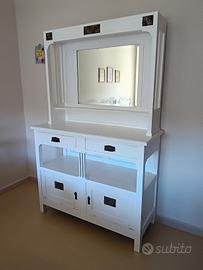 mobile antico com 2 cassetti e due ante, colore bianco antico, con specchio. e decorazioni in ottone. scomponibile in 2 pezzi ottime per il trasporto dimensioni : lunghezza 130cm altezza 200cm profondo 52cm