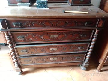Vendo mobile antico cassettiera cassettone con specchio, buone condizioni ma necessita di un leggero restauro, dimensioni ingombro larghezza 121cm profondità 56cm altezza 103cm al piano 191cn allo specchio, valuto qualsiasi offerta trasporto a carico dell'acquirente possibilità di vendita multipla o in blocco con altri mobili in mio possesso, guarda anche altri miei annunci offerta a tempo poiché necessito di sgombrare i locali