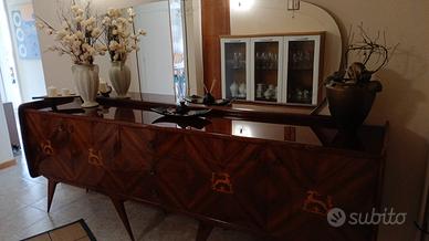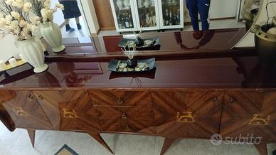 Vendo mobile in foto per rimpiazzo con un altro mobile. Misure: larghezza 252 cm; profondità 49 cm; altezza 90 cm. Caratteristiche: Mobile trattato benissimo durante gli anni. Molto spazioso ed adatto a corridoi o salotti grandi. Colore marrone lucidato con dettagli in color oro. 8 piedini come in foto e di colore oro. Dotato di 4 cassetti grandi dove poter riporre diversi oggetti o cose e di 3 cassetti centrali. Disponibile per ulteriori info e prezzo trattabile! Grazie!
