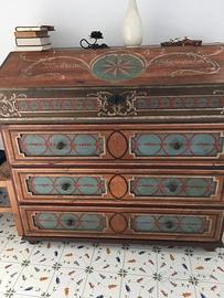 Comò tirolese risalente alla seconda metà del 1800. In buono stato globalmente ma necessita di interventi di restauro