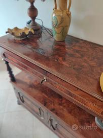 Mobile antico particolare, necessita di una sistemata perché la radica in alcuni punti si è rovinata. E' stato valutato da un antiquario 500 euro nello stato attuale.
