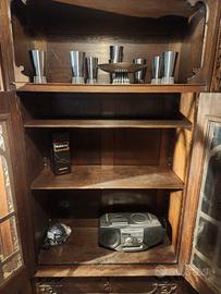 Vendo bellissimo introvabile mobile antico inglese, in legno massello scuro, con vetrinette, mensole, cassetti e ricchi intarsi e particolari in ferro battuto