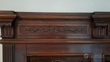 ANTICO MOBILE CREDENZA, IN NOCE ED ABETE CON MOTIVI FITOMORFI