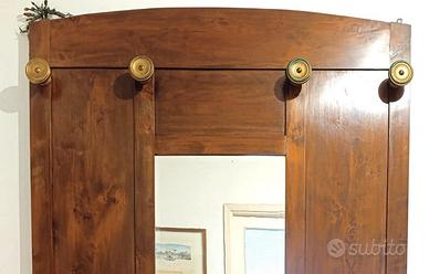 Mobile antico del '900 in legno di pioppo tinto a noce per Attaccapanni a muro da ingresso in ottime condizioni con portaombrelli e specchio. Misure: Lunghezza 126 cm. Altezza 210 cm. Profondo 15 cm.