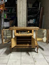 Vendo mobile antico e raro degli anni 60 ereditato da mia nonna, ideale per chi ama l’antiquariato vero oppure chi lo vuole rendere più moderno riverniciandolo. È incluso un giradischi e una vetrinetta per i bicchieri, una sciccheria