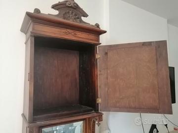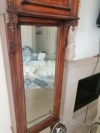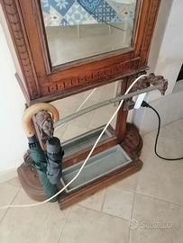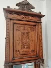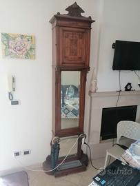 Questo mobile antico conteneva in origine un pendolo nello scomparto superiore. Lo scomparto centrale probabilmente era un porta fucili. É in ottime condizioni e anche lo specchio è originale. Alla base é presente un porta ombrelli.