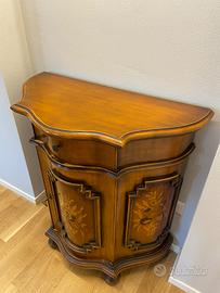 Mobile antico in legno intarsiato in ottime condizioni. Comodo cassetto porta oggetti di piccole dimensioni e grande spazio sottostante per riporre grandi oggetti. Consegna in zone limitrofe o ritiro in loco.