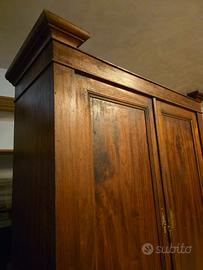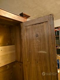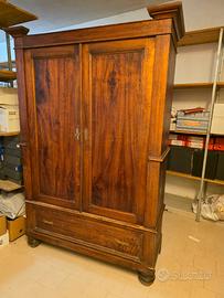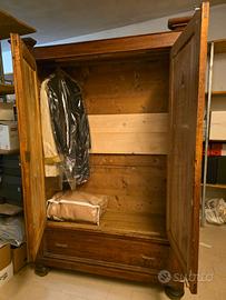 Le porte si aprono e chiudono correttamente, il cassetto scorre in modo regolare e le maniglie sono originali. Il mobile è adatto come armadio, guardaroba o elemento d’arredo per ambienti rustici, taverne, case in campagna o spazi arredati in stile classico.