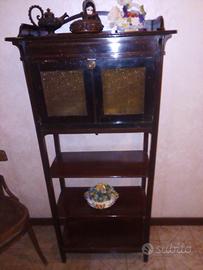 Mobile antico con calatoia a vetri colorati in mogano + tavolino elegante con vetro sulla base.Primi 900.Molto particolari.Affarissimo.Prezzo scontatissimo .!!!!!!!!!