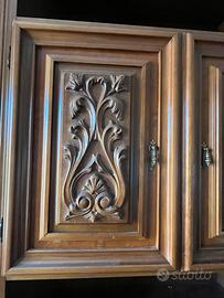 Mobile legno antico con vetrinette laterali con ante ad intarsio