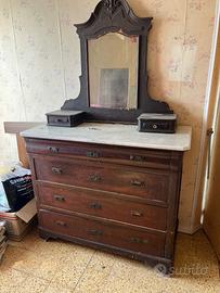 Vendesi mobile da camera antico con specchio più mobiletto da camera e letto in ferro battuto