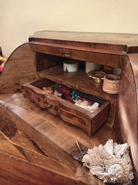 Cassettone a ribalta listrato in noce e radica con sportelli laterali n.cassettiere come da foto trattativa privata solo per appassionati ritiro sul posto