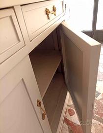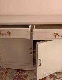 salve vendo come da titolo un mobile scabby appena restaurato dalla a alla z bianco con particolari in oro per qualsiasi informazione contattatemi