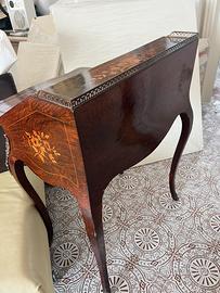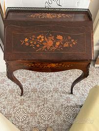 Ribaltina francese in legno con intarsi pregevoli. Con due cassetti e sottofondo. Bella fattura