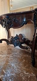 bellissima consolle stile luigi xiv intarsiata a mano legno pieno con marmo grigio .