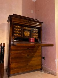 La parte superiore presenta numerosi cassettini e scomparti, spesso con meccanismi segreti, ideali per custodire documenti e oggetti di valore.