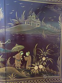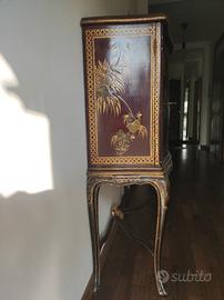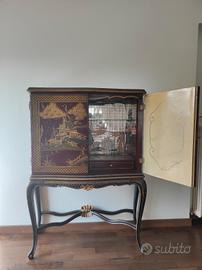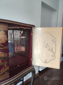 Madia in legno decorata a mano in stile giapponese, con interno specchiato, ottimo come angolo bar. Misure: 130x35x95
