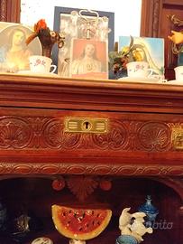 vendo como' stile ottocento siciliano intarsiato completo di marmo più specchio con angelo in buone condizioni.le spese di trasporto e spedizione a carico dell'acquirente.