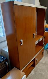 Mobile appendiabiti con specchio, cassetto e ripiani Misure LxPxH (130x33x180) cm