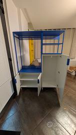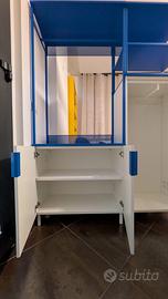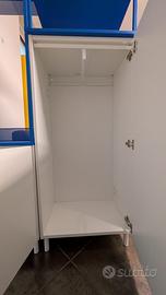 Mobile appendiabiti e scaffale Ikea bianco e blu, con possibilità di usare i pezzi anche separatamente. Ottime condizioni. Misure: 140x210x40