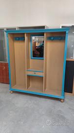 Appendiabiti, specchio, cassetto, ripiano svuota-tasche, scarpiera. Misure 167*32*184 cm (L*P*H) - profondità alla cornice 37 cm.