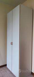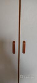 Il mobile bianco con rifiniture marroni chiaro, a due ante. Altezza m2,50 lunghezza 1 m profondità cm 61. Diviso in due scomparti ma può essere composto a vostro piacimento