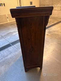 Mobile antico cinese in legno di pero Mobile artigianale di alta qualità. Presumibilmente un pezzo unico . 3 mensole interne Misure : 119 cm altezza 40 cm profondità 83 cm larghezza (massima data dalle spallette laterali)