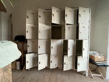 Raro Mobile armadio industrial vintage , 20 sportelli. Ideale per studio di Design , negozi , allestimenti per enoteca e vini. Ampie dimensioni interne , molto capiente. Entra una tshirt piegata, bottiglia in piedi e stesa. Altezza 175cm , larghezza 165cm, profondita 40cm, spazio utile interno ad ogni sportello 37,5cm altezza , 34cm larghezza , 38cm profindita’.