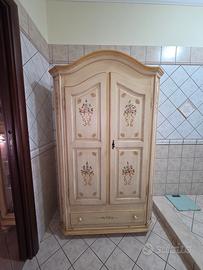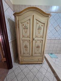 armadio arte povera a 2 ante con cassetto tutto completamente in legno, colore avorio con ricami ed intarsi fatti a mano, piedi a cipolla e cappello curvo.. mobile da definirsi nuovo info 3316292270