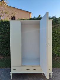 Armadio d'epoca in legno porta abiti + 2 cassetti + specchio restaurato colore verde pastello. Ritiro e/o spedizione a carico dell'acquirente