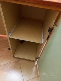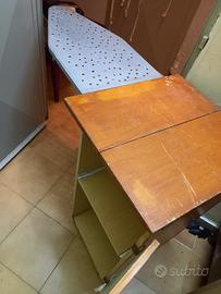 Mobile asse da stiro, ruote alla base, asse in metallo, due tipiani interni. Ritiro a cura dell'acquirente.