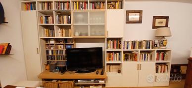 Vendo mobile libreria Lema, con vetrinetta e mensolone per TV con portacavi. Ampia libreria e anta guardaroba. Misure lungh 408 , prof 44, h 240 e 110