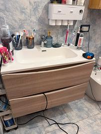 Mobile bagno sospeso moderno con lavabo integrato e specchio incluso, in ottime condizioni. 📏 Dimensioni mobile: •Larghezza: 80 cm •Altezza: 50 cm •Profondità: 45 cm 🪑 Caratteristiche: •Mobile sospeso con finitura effetto legno chiaro, elegante e contemporaneo •2 ampi cassetti molto capienti con apertura comoda •Lavabo integrato in ottime condizioni •Specchio incluso con illuminazione superiore •Ideale per bagno moderno, funzionale e salvaspazio •Ottima capacità contenitiva (come da foto) ✅ Condizioni molto buone, pronto all’uso ⸻ ⚠️ Nota importante 👉 Smontaggio, trasporto e montaggio sono a carico dell’acquirente