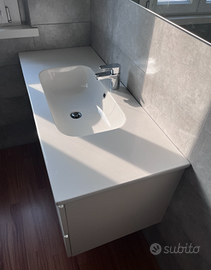 Vendo per ristrutturazione mobile bagno in perfetto stato, 120cm, compreso di coppia di rubinetti (lavandino + bidet). Piano in gres porcellanato, cassettoni a tutta lunghezza. Incluso specchio da 120cm con luce integrata, anch’esso in ottimo stato. Solo ritiro, no spedizione. Compravendita tra privati con formula visto e piaciuto. Prezzo non trattabile. Prezzo 500€