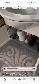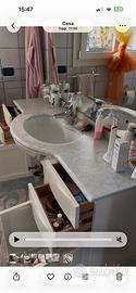 Mobile bagno con lavandino e specchio. Miscelatore Grohe. 4 cassetti, 4 ante. Top in marmo con alzatina integro. Specchio ossidato alla base.