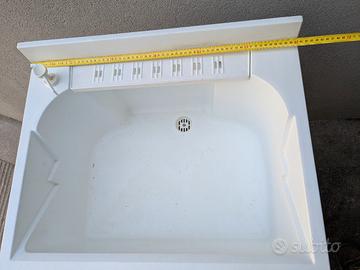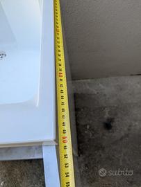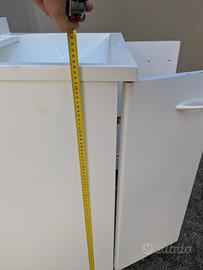 Vendo mobile per bagno in legno bianco con vasca in plastica compreso di sifone. Il prezzo del mobile è 40€ il prezzo del miscelatore a muro è 20€ misure: H 80cm - L 60cm - P 50cm
