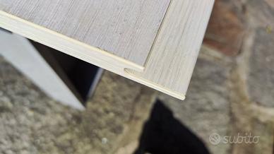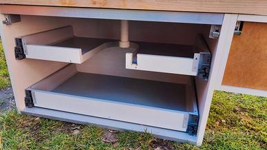 2 cassetti sotto il lavabo larghezza 85 cm, uno piccolo a sx largo 40 cm, senza maniglie con gola per inserire le dita e poterli tirare.