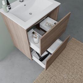 Base con piedini dal design moderno. Materiale: legno nobilitato con bordatura da 2mm in abs e aumentata resistenza all'umidità.