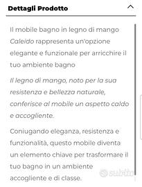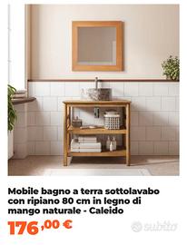 Mobile bagno a terra sottolavabo con ripiano 80 cm in legno di mango naturale - serie Caleido. Comprato per errore e mai usato. Valore nuovo 176 euro. Utilizzabile anche in altri ambienti. Misure 80x50cm altezza 75cm piedini 10cm.