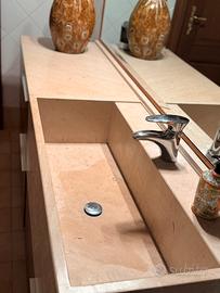 Top e lavatoio interamente in marmo chiaro, con rubinetteria monocomando inclusa e sifoneria già predisposta, pronto per il montaggio.