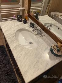 Vendo mobile bagno arte povera con piano in marmo Carrara e lavabo incassato, completo di specchio con plafoniere e rubinetto.