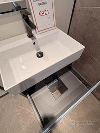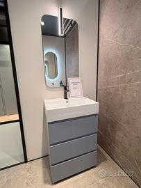 Vendo per cambio espositivo mobile bagno L60 cm x P50 laccato azzurro cielo con lavano in ceramica e specchio. 3 cassetti, montaggio a terra.