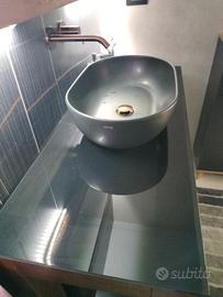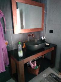 vendesi mobile bagno completo di vasca , realizzato in massello con vetri scuri temperato da 12mm massello da 100x100 colore noce , 124x60 cm , specchiera legno con vetro realizzato su misura larghezza 100 retroilluminato led attacco 220 ac , colore rame , piletta sifone e tubazioni color rame