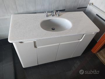 Mobile bagno classico in ottime condizioni con specchio e porta asciugamani coordinato. Misure top marmo 130x60
