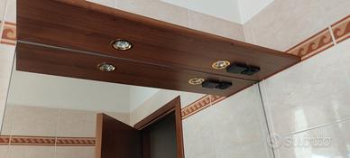 Mobile del bagno con due ante due cassettini laterali e lavabo a incasso compreso di specchio con faretti e miscelatore. In ottimo stato.