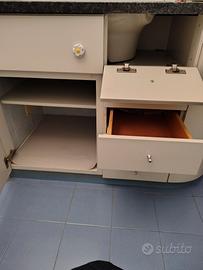 Mobile bagno bianco, con top in granito Labrador Blue Pearl Misure: 110 h / 80 l / 60 p Smontaggio e trasporto a carico dell'acquirente