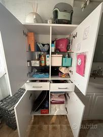 Vendo mobile bagno bianco licido cpn piedi e dettagli argentati. Larghezza 68 profondità 34. Il mobile non presenta segni evidenti di usura, 4 antelli organizer e due cassetti per organizzare al meglio gli spazi.