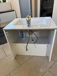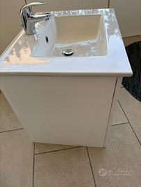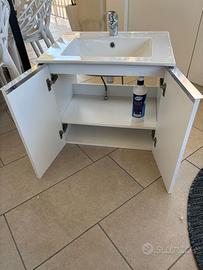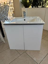 Vendo mobile bagno bianco lucido con ante, completo di lavabo e rubinetto, dimensioni 60x45 cm. Il mobile è stato usato pochissimo, installato temporaneamente in un secondo bagno in attesa della realizzazione definitiva, quindi si presenta in ottime condizioni, pari al nuovo. Ideale per bagni di piccole/medie dimensioni o come soluzione pratica e immediata. Caratteristiche: * Dimensioni: 60x45 cm * Colore: bianco lucido * Struttura con ante * Lavabo incluso, integro * Rubinetto incluso e funzionante * Usato poco Prezzo: 150€ Ritiro: a mano a Minerbio Contattami per maggiori informazioni o per visionarlo.